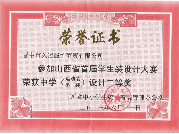 山西久冠服飾有限公司位于晉商故里山西省晉中市。公司注冊商標“久冠”,是山西省教育學會學生服被裝專業(yè)委員會會長單位,中國質量萬里行促進會理事單位,中國教育裝備行業(yè)協會學校后勤裝備管理分會常務理事單位。